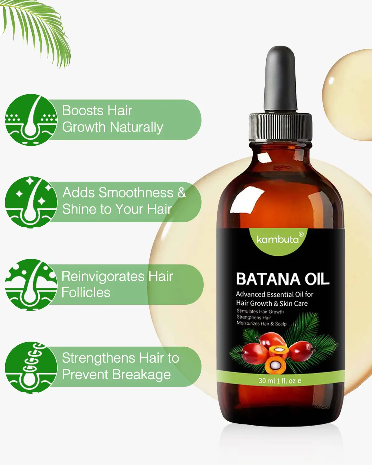 - Batana Oil (Elaeis Oleifera Kernel Oil): Deeply conditions scalp & strands to improve softness and shine.
