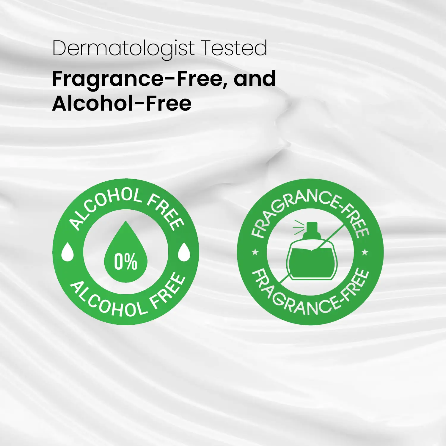 - Clean & Gentle: Derm-tested, fragrance-free, alcohol-free, non-comedogenic.